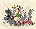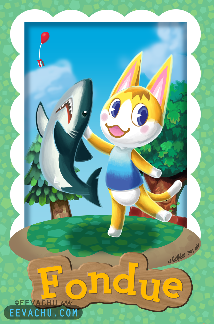 In the style of the Animal Crossing video game series. Choice of background. Available in Digital only.
