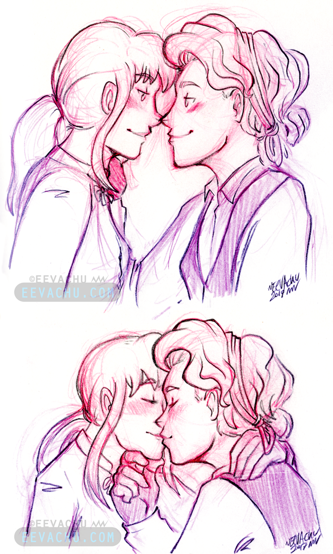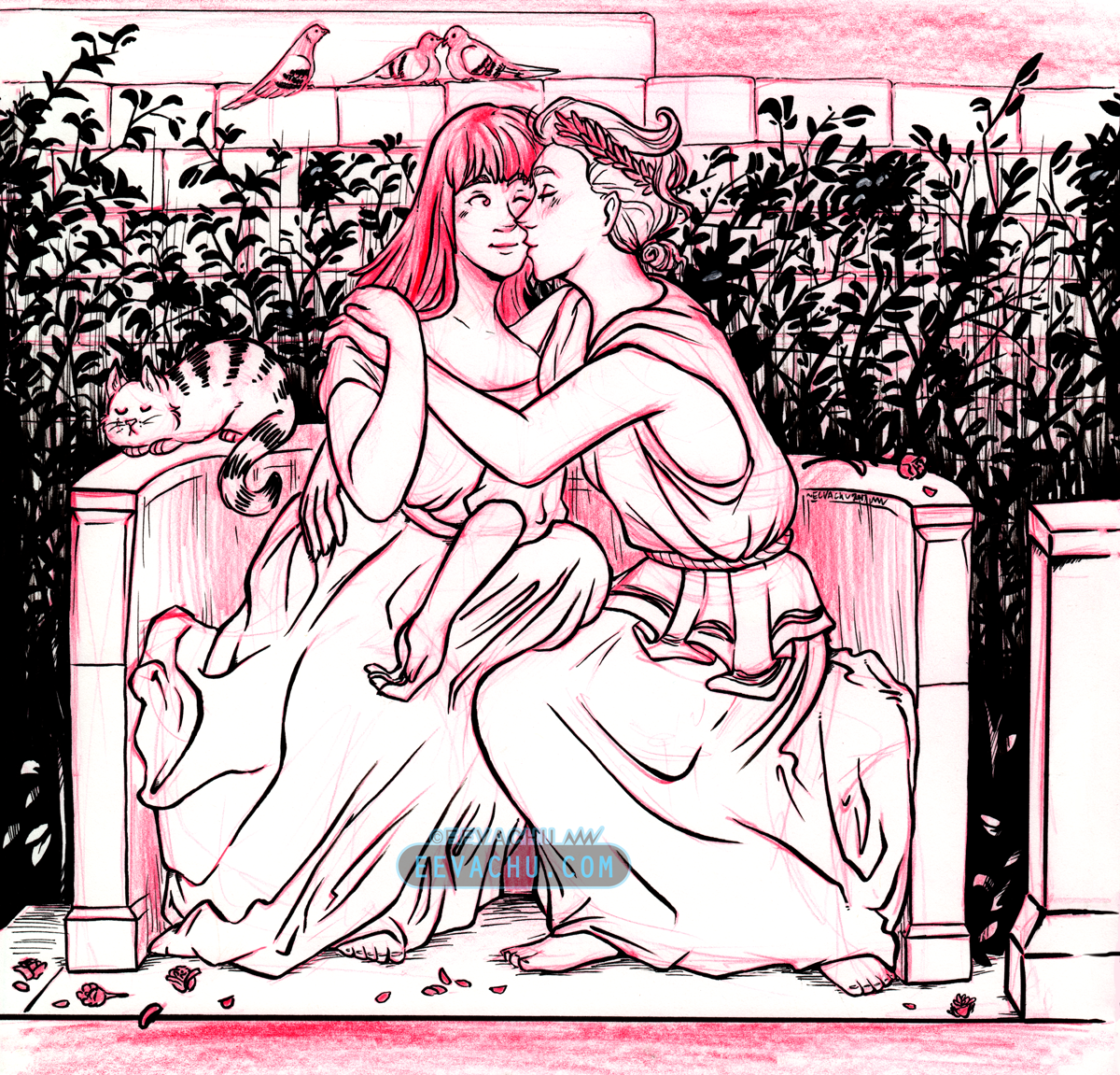Cleaned up lineart, can include under-sketch or omit it. Coloured pencil and pen.