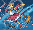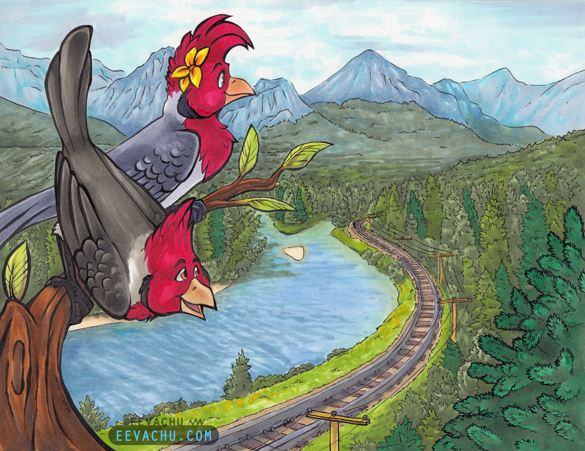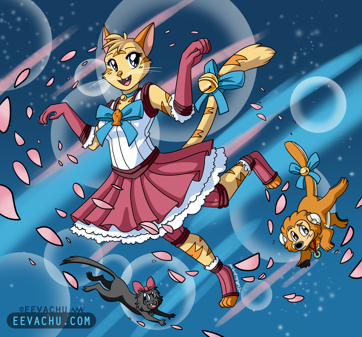 A faux animation cel, containing a paper sketch, an inked and painted cel and a gouache background done in my animation style or any animation style of your choice. Available in Traditional only.