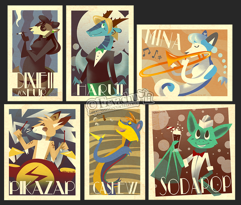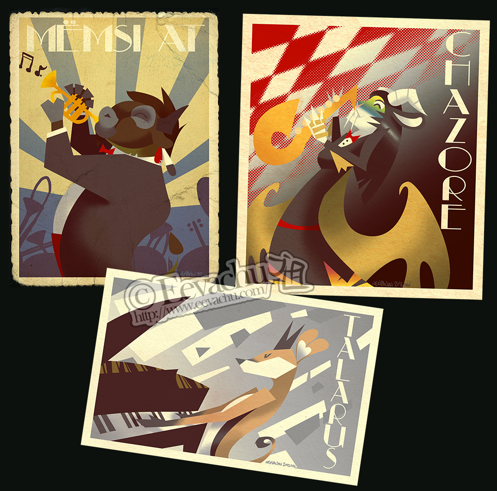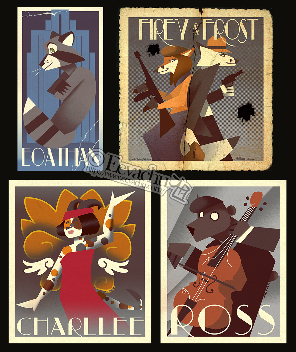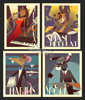 "Historical-styled" badges made to like art deco posters. Available in Digital only.