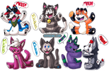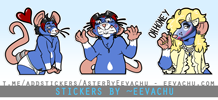Available in Digital only. No minimum order. Flat colour. Will be a mix of headshots/waist-ups/full-body poses, and can include YCH character and props for no additional cost. Must be of same character. Price applies if more stickers of the same character are ordered at a later date (you order 6 initially, 5 for $22 and 1 for $19, you can order 3 more at $19 each later). Additional costs may apply if sticker is overly complex/contains a second non-YCH character.