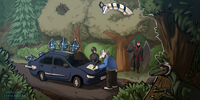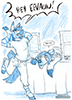 A faux animation cel, containing a paper sketch, an inked and painted cel and a gouache background done in my animation style or any animation style of your choice. Available in Traditional only.
