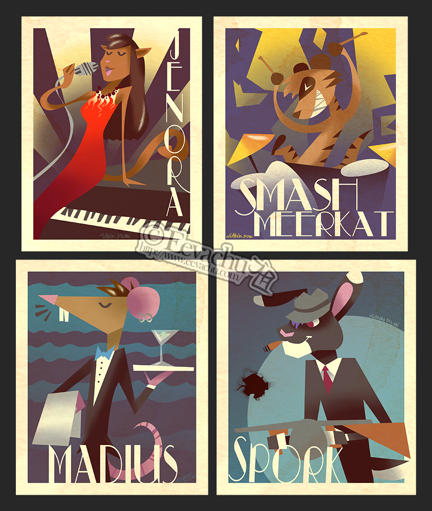 "Historical-styled" badges made to like art deco posters. Available in Digital only.
