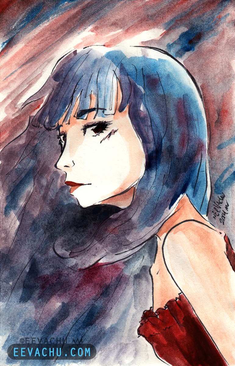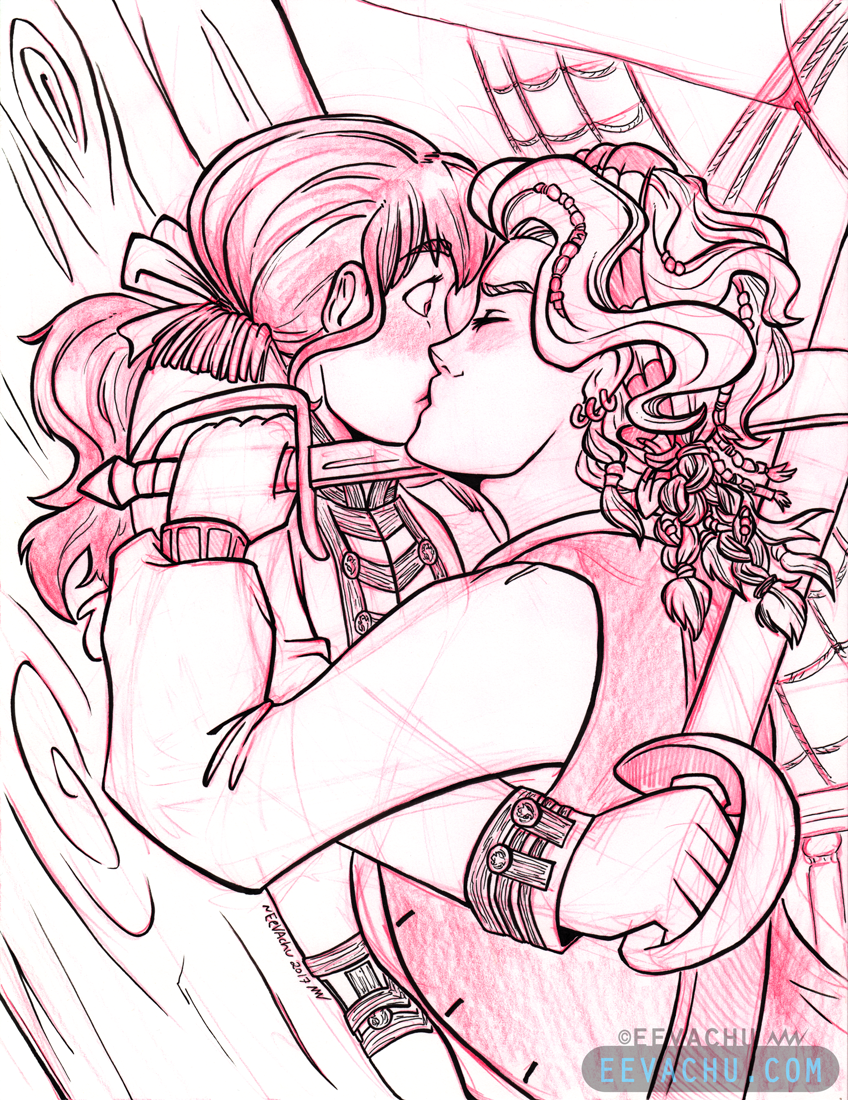 Cleaned up lineart, can include under-sketch or omit it. Coloured pencil and pen.